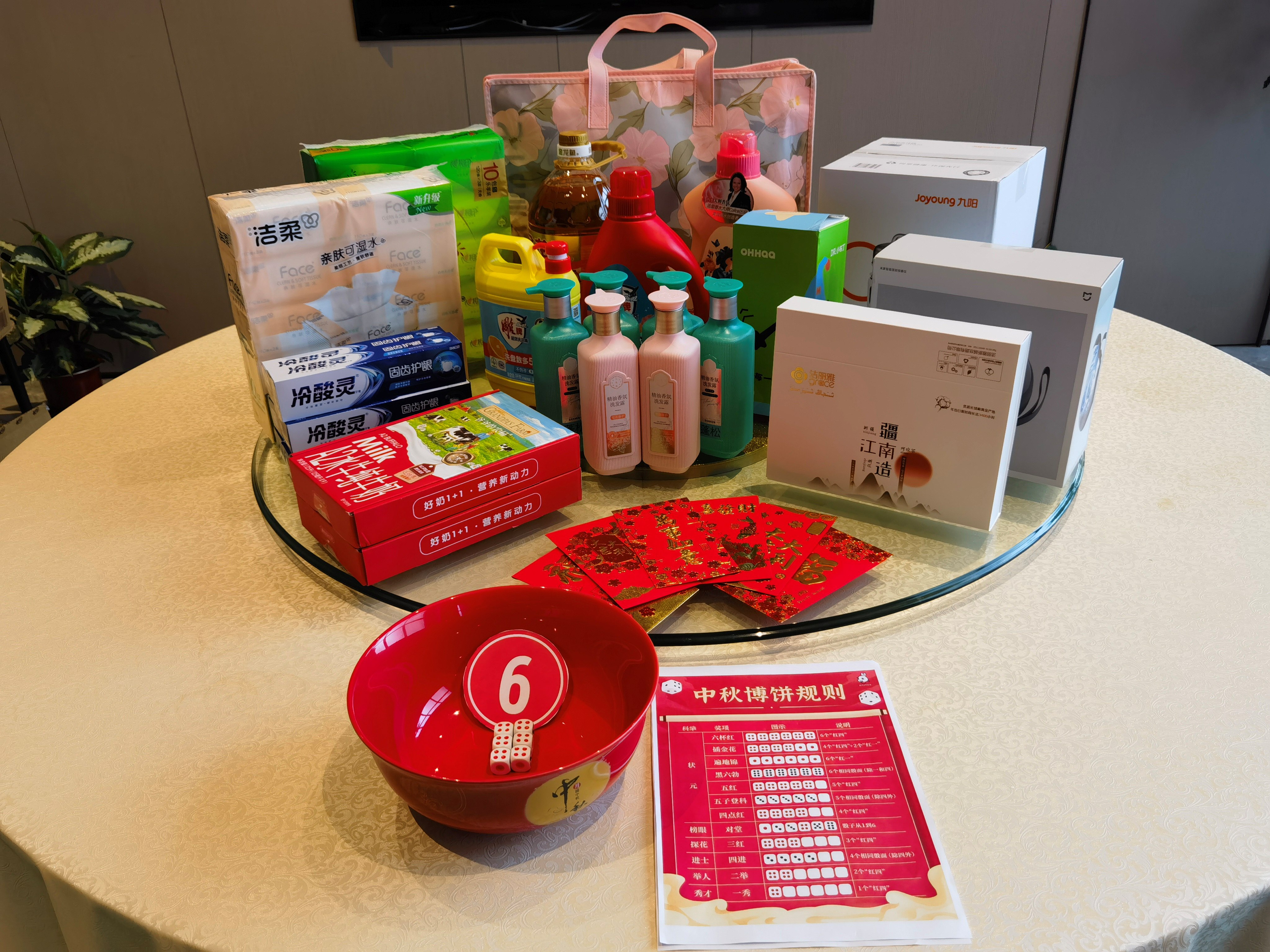 活动现场,六枚骰子在青花瓷碗中清脆碰撞,此起彼伏的欢呼声与笑语声交织成秋日里最动人的乐章。经过多轮精彩角逐,所有员工满载而归,脸上洋溢着收获的喜悦。